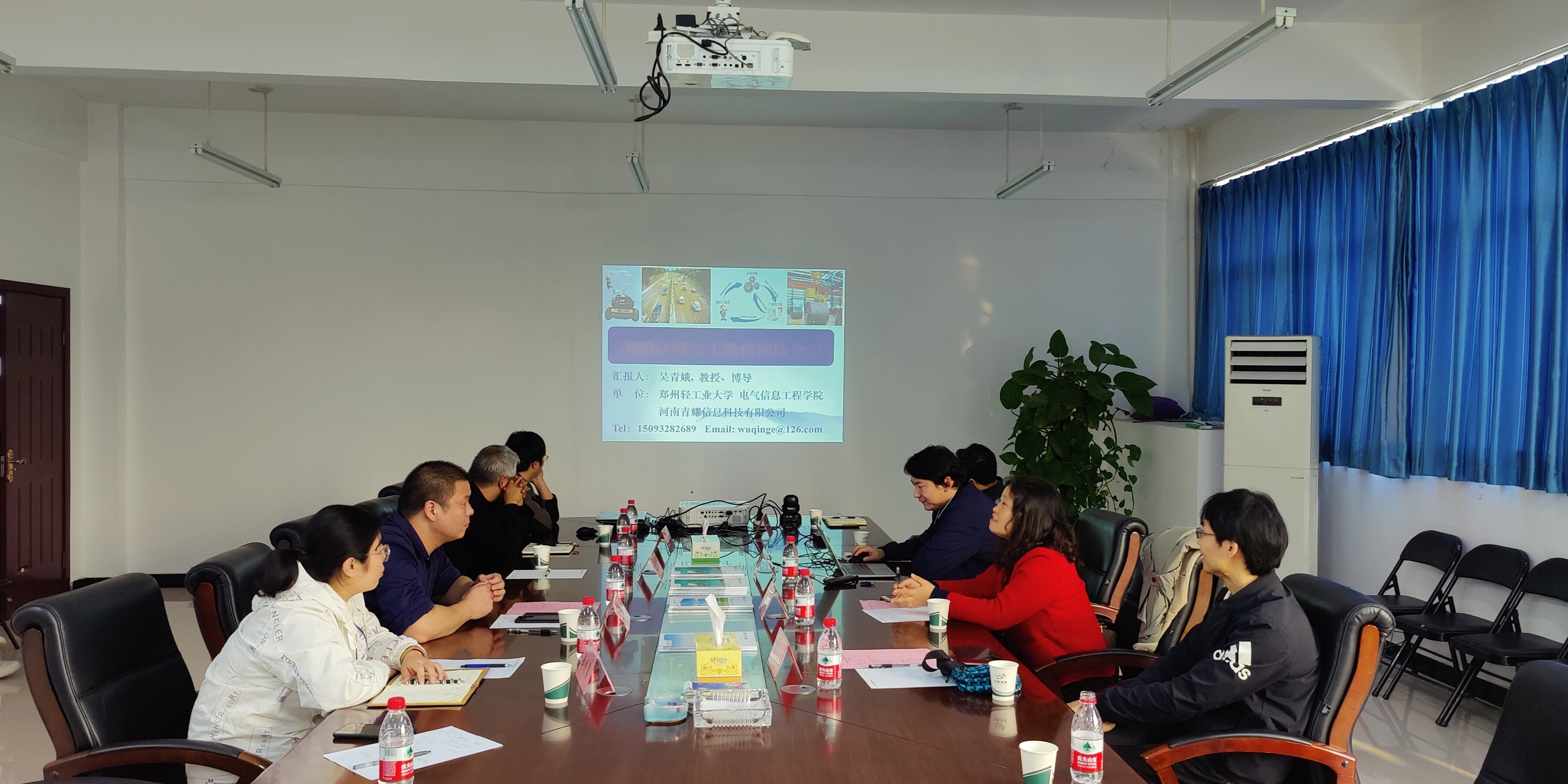 隨后,雙方在會(huì)議室展開(kāi)座談。公司常務(wù)副總宋寬寬對(duì)吳教授團(tuán)隊(duì)的到來(lái)表示誠(chéng)摯歡迎。吳教授對(duì)許昌智能取得的業(yè)績(jī)給予充分肯定,并重點(diǎn)介紹了其科研團(tuán)隊(duì)在人工智能與圖像處理、智能決策、大數(shù)據(jù)與數(shù)據(jù)處理技術(shù)等領(lǐng)域的研究成果及推廣應(yīng)用情況。雙方就加強(qiáng)技術(shù)、人才合作進(jìn)行了深入交流,并圍繞各自領(lǐng)域從不同角度提出了創(chuàng)新合作思路和切入點(diǎn)。