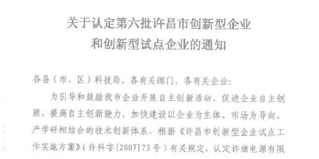 為引導(dǎo)和鼓勵(lì)我市企業(yè)開(kāi)展自主創(chuàng)新活動(dòng),促進(jìn)企業(yè)自主創(chuàng)新,提高自主創(chuàng)新能力,加快建設(shè)以企業(yè)為主體、市場(chǎng)為導(dǎo)向、產(chǎn)學(xué)研相結(jié)合的技術(shù)創(chuàng)新體系。河南許繼智能控制技術(shù)有限公司,作為許昌市重點(diǎn)推薦企業(yè),經(jīng)過(guò)嚴(yán)格的評(píng)選,從許昌市多家申報(bào)企業(yè)中脫穎而出,認(rèn)定為“2013年許昌市創(chuàng)新型企業(yè)”。