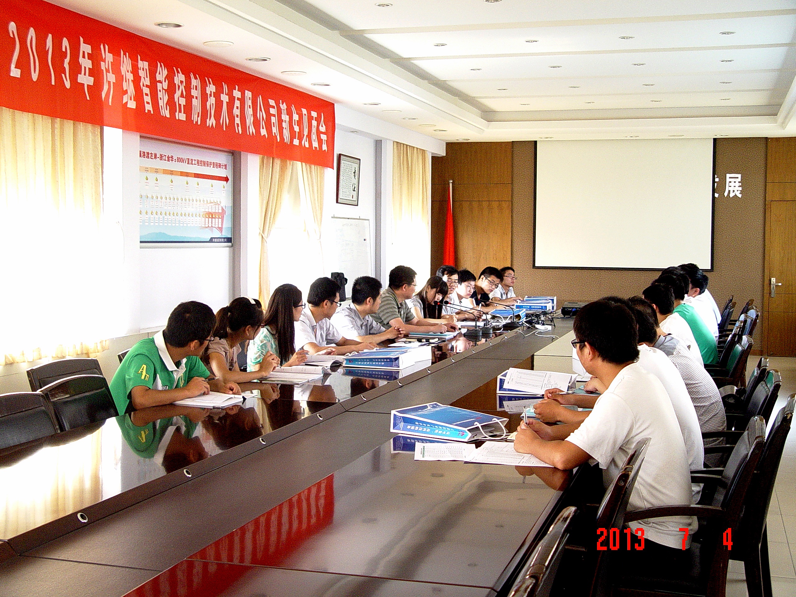 2013年7月5日上午,許繼智能控制技術(shù)有限公司新生見面會在集團(tuán)生產(chǎn)處會議室舉行,來自各大院校的二十多名畢業(yè)新生參加了本次見面會,公司總經(jīng)理張總、田副總出席了會議并進(jìn)行了交流座談。