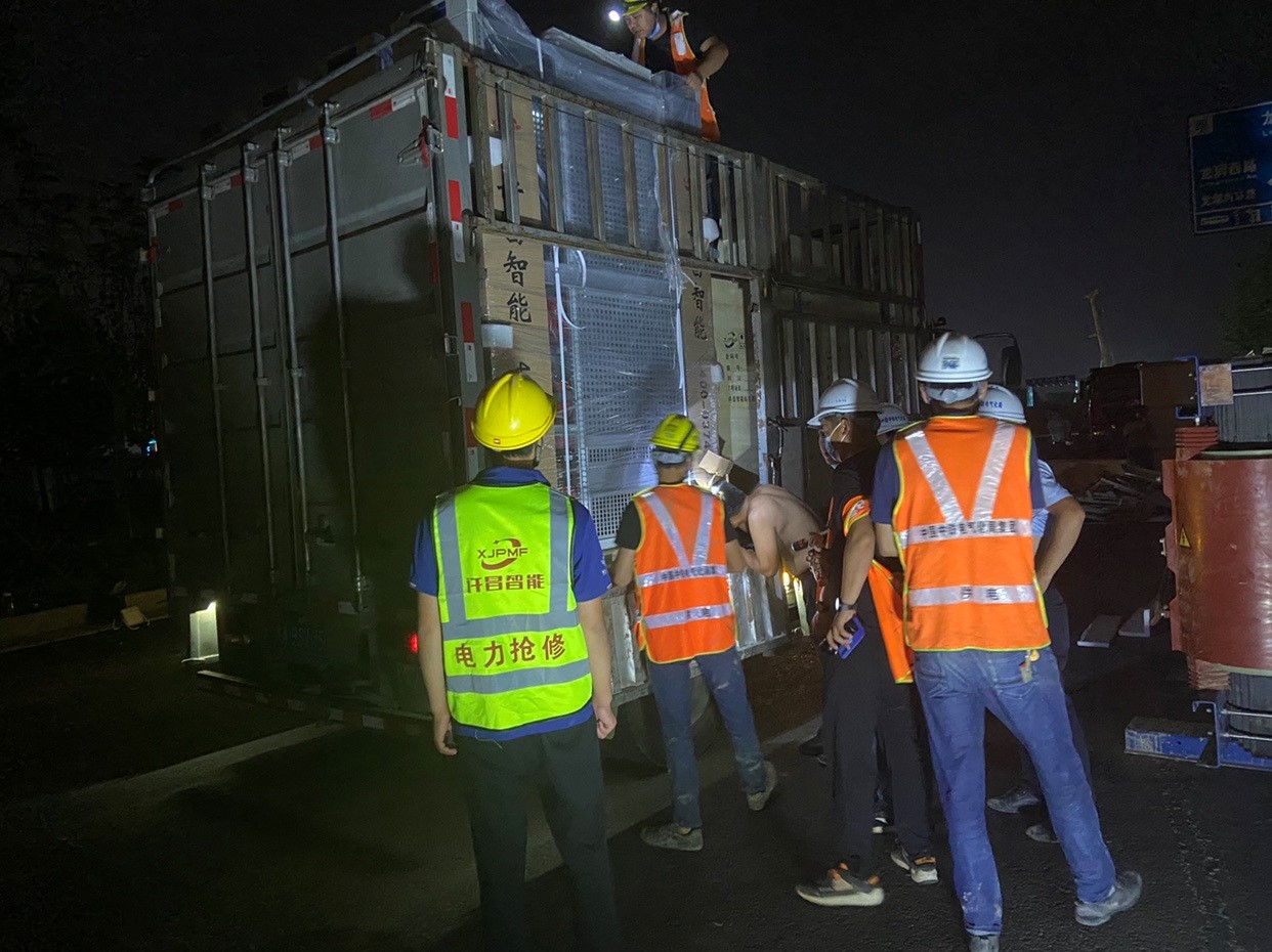 鄭州地鐵4號線清華附中站發(fā)生嚴(yán)重的水淹事故,淤泥有15公分左右。技術(shù)人員腳踏深厚淤泥進(jìn)入設(shè)備房對設(shè)備狀態(tài)進(jìn)行檢測與判斷,設(shè)備房內(nèi)嚴(yán)重進(jìn)水。技術(shù)人員對相關(guān)檢測數(shù)據(jù)進(jìn)行了記錄,并將現(xiàn)場判定結(jié)果反饋給公司應(yīng)急搶險(xiǎn)指揮人員,公司立刻組織設(shè)計(jì)、生產(chǎn)、結(jié)構(gòu)、調(diào)試開展搶險(xiǎn)再生產(chǎn)工作,現(xiàn)場工作也是如火如荼地進(jìn)行中。售后技術(shù)人員29日開始配合現(xiàn)場施工單位進(jìn)行原設(shè)備的拆卸,并于30日完成拆卸工作,31日設(shè)備從公司發(fā)往施工現(xiàn)場。售后人員及時(shí)接貨并積極與現(xiàn)場單位溝通,連夜將設(shè)備吊裝到站內(nèi)站廳層,并配合施工單位運(yùn)至站臺層設(shè)備房,8月1日開始安裝,直至今日8月2日設(shè)備已完成全部并柜安裝。后續(xù)技術(shù)人員仍分兩撥24小時(shí)不間斷的配合現(xiàn)場施工,確保后續(xù)調(diào)試順利完成,助力鄭州地鐵早日恢復(fù)運(yùn)營。