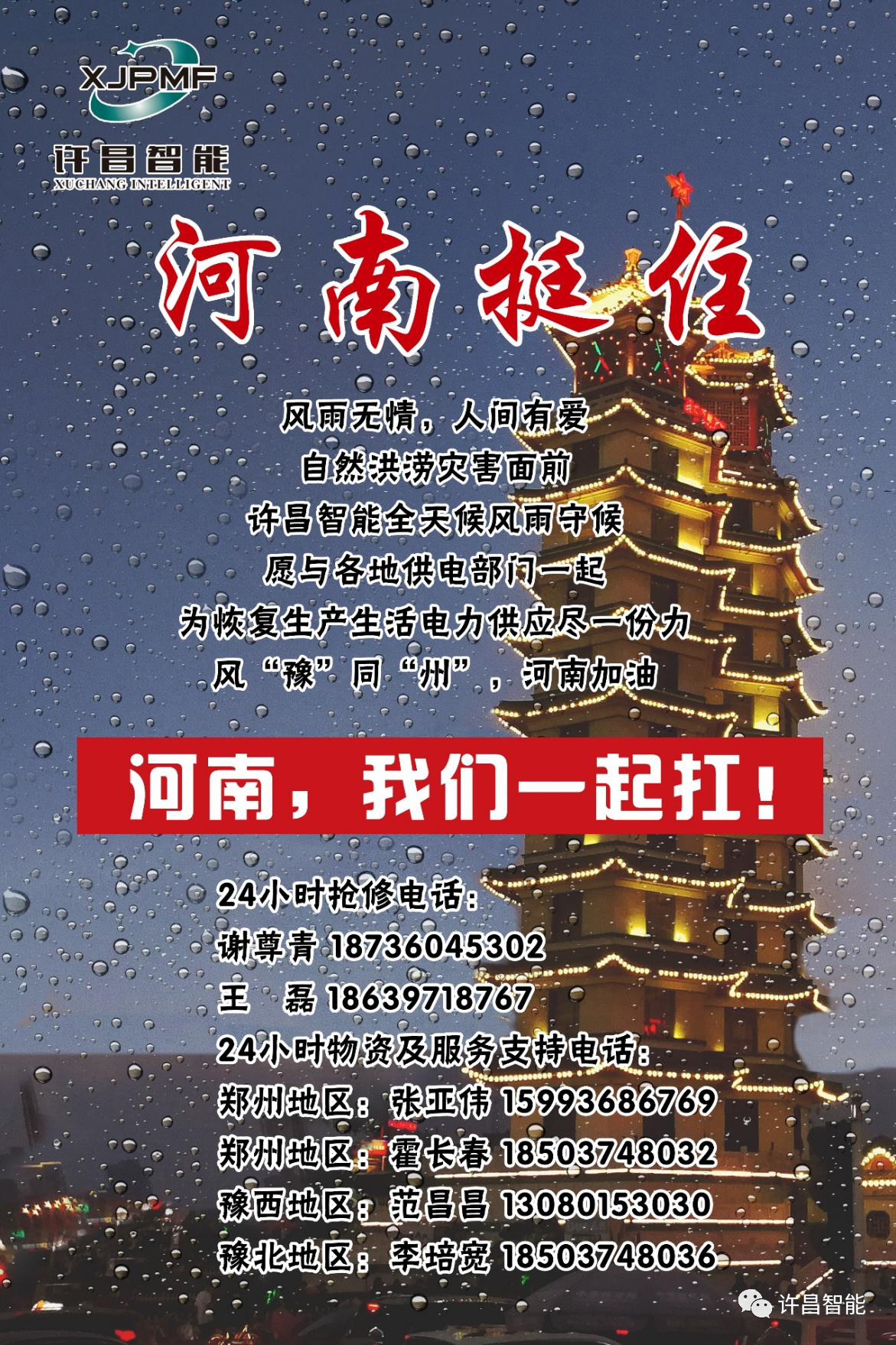 暴雨無情人有情,大災(zāi)面前有大愛。面對天災(zāi),許昌智能人展現(xiàn)的不畏風(fēng)雨,大愛無私的精神,將在抗洪搶險(xiǎn)第一線筑起一道鋼鐵長城,全力支援河南電力,保障安全用電。