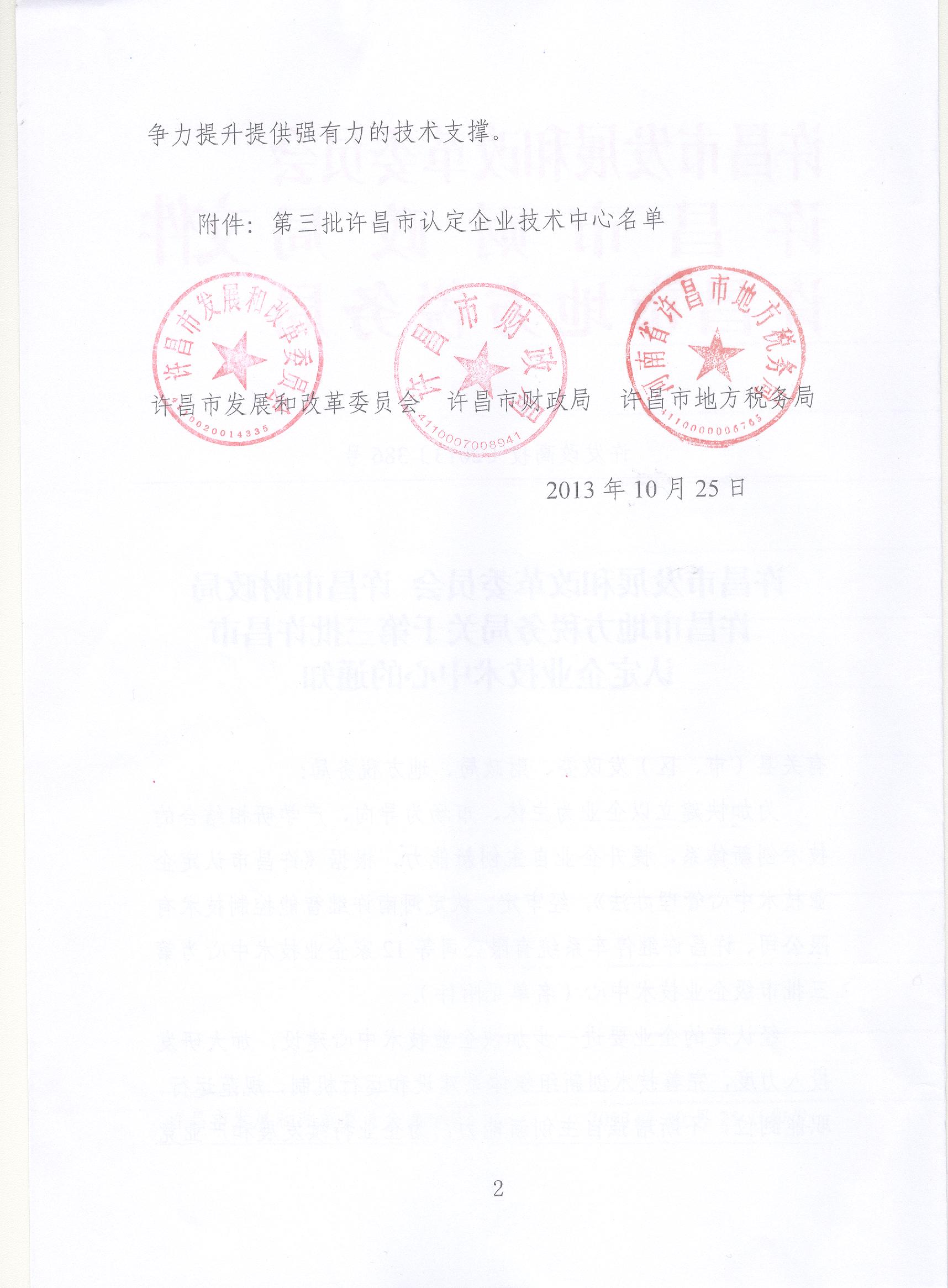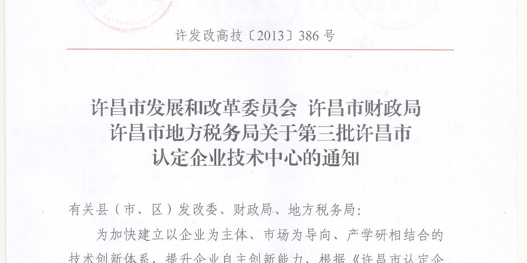 許昌市企業(yè)技術(shù)中心的認定充分體現(xiàn)了公司技術(shù)創(chuàng)新和科技投入的主體地位,具有較強的技術(shù)創(chuàng)新能力、顯著的創(chuàng)新業(yè)績。