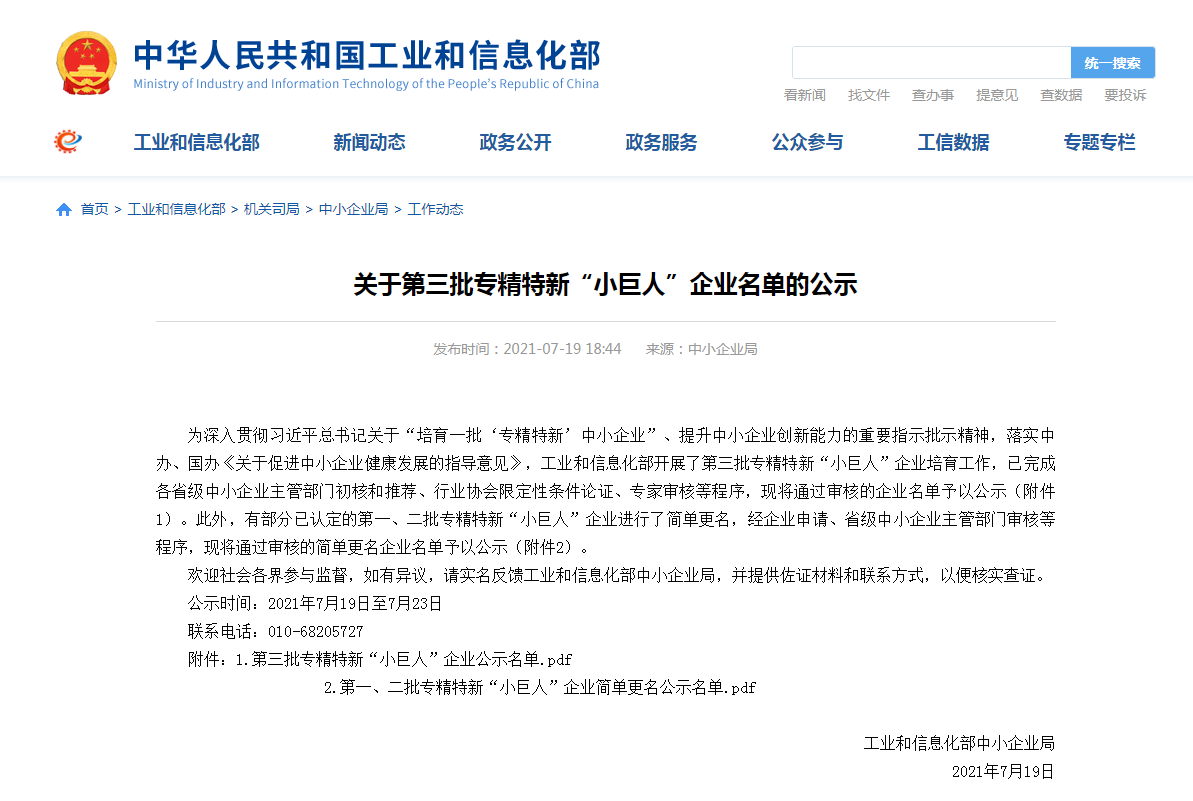 7月19日,國(guó)家工業(yè)和信息化部公示了第三批國(guó)家級(jí)專精特新“小巨人”企業(yè)名單,許昌智能成功入選。這是公司繼國(guó)家高新技術(shù)企業(yè)資質(zhì)后再次獲得的國(guó)家級(jí)榮譽(yù)。