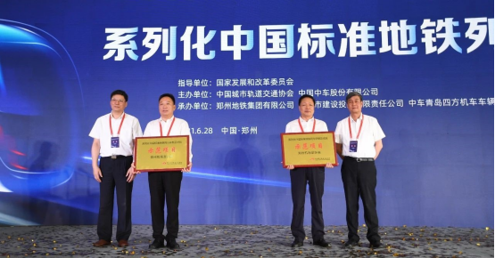 國家發(fā)改委產(chǎn)業(yè)發(fā)展司副司長蔡榮華、中國城市軌道交通協(xié)會副會長兼秘書長宋敏華為“系列化中國標(biāo)準(zhǔn)地鐵列車研制及試驗示范項目”授牌。