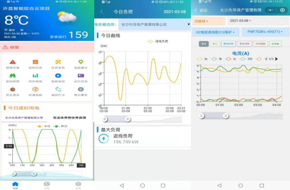 運(yùn)維云平臺(tái)系統(tǒng)支持手機(jī)App客戶(hù)端的遠(yuǎn)程訪問(wèn)功能,用戶(hù)通過(guò)手機(jī)App可以隨時(shí)隨地對(duì)配電室運(yùn)行狀態(tài)的實(shí)時(shí)掌握。同時(shí)系統(tǒng)能將配電室的異常報(bào)警及時(shí)推送到用戶(hù)的手機(jī),使用戶(hù)能夠及時(shí)進(jìn)行故障的定位和排查,保障配電室安全運(yùn)行。部分功能如下圖所示。