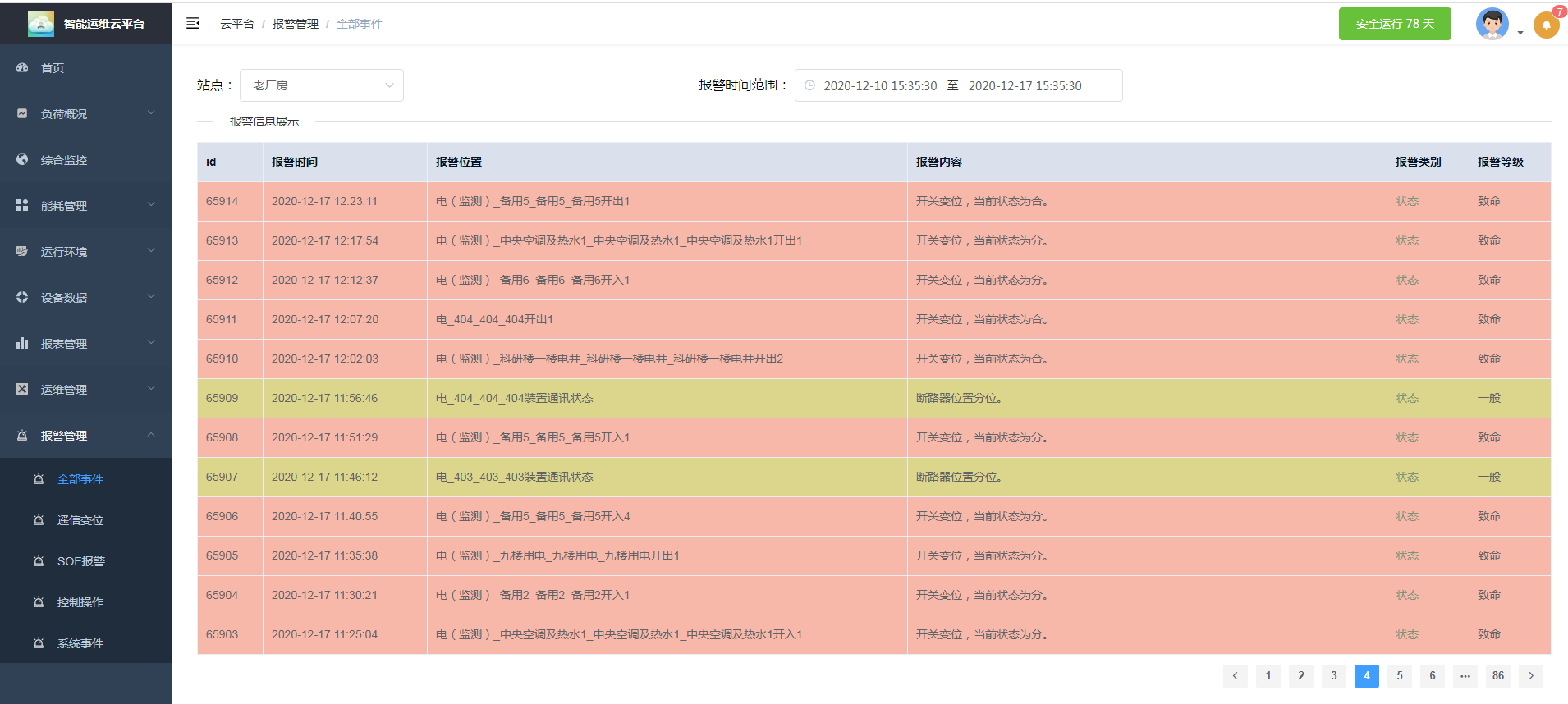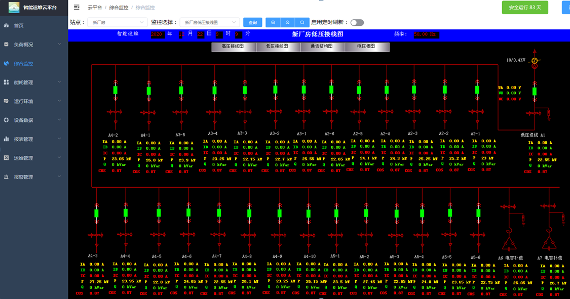 大屏展示可以集中顯示一定區(qū)域內(nèi)各個站點設(shè)備負荷及運行狀況,用電負荷、報警信息及任務(wù)發(fā)布匯總等,通過大屏可以整體了解平臺運行情況。