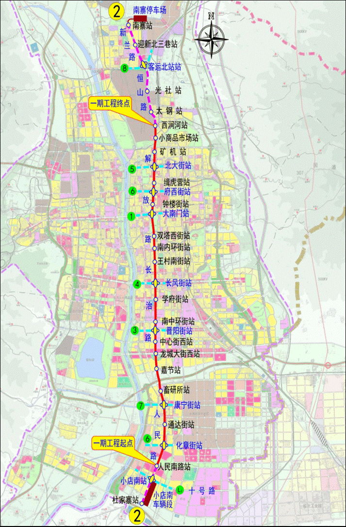 太原軌道交通2號(hào)線一期工程線路圖