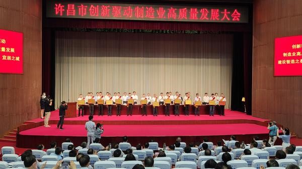 6月28日上午,許昌市創(chuàng)新驅(qū)動(dòng)制造業(yè)高質(zhì)量發(fā)展大會(huì)隆重召開(kāi),市委、市政府對(duì)2019年度為許昌市科技創(chuàng)新、制造業(yè)高質(zhì)量發(fā)展做出突出貢獻(xiàn)的單位、企業(yè)進(jìn)行了表彰獎(jiǎng)勵(lì),許昌智能榮獲多項(xiàng)表彰。