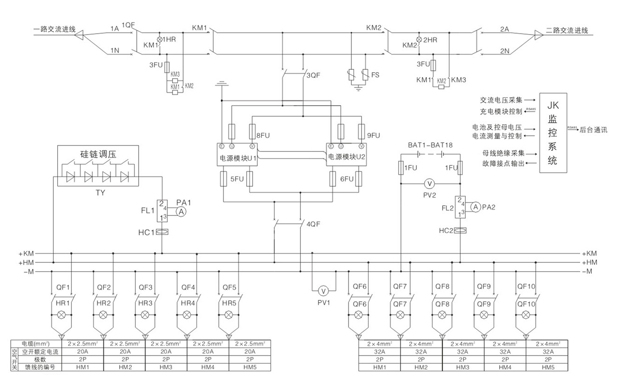 根據(jù)目前直流屏電源設(shè)備應(yīng)用現(xiàn)狀來看,一般采用的是24V、48V、110V、220V等多種電源輸出形式,有單路電源、雙路電源兩種電源形式可供選擇,能夠給一次設(shè)備操作機(jī)構(gòu)提供可靠的分合閘電流。