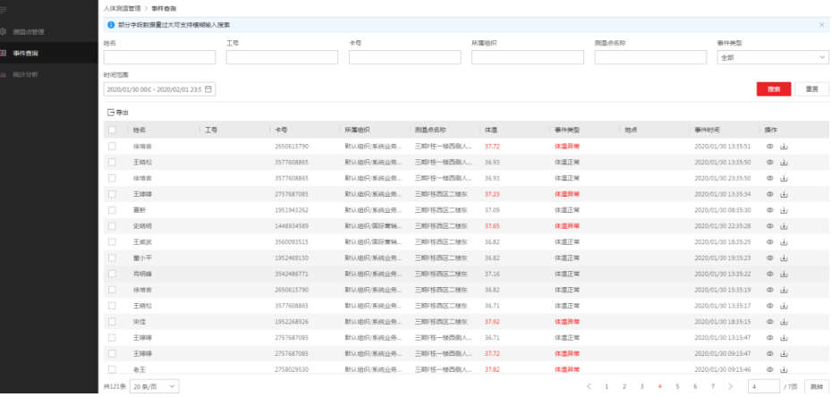 查詢并導(dǎo)出體溫事件。