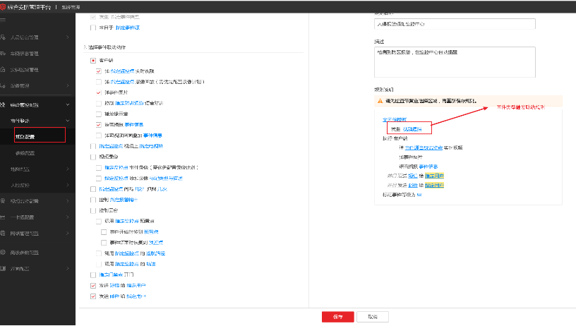 事件聯(lián)動(dòng)配置彈框、短信、預(yù)覽、錄像。