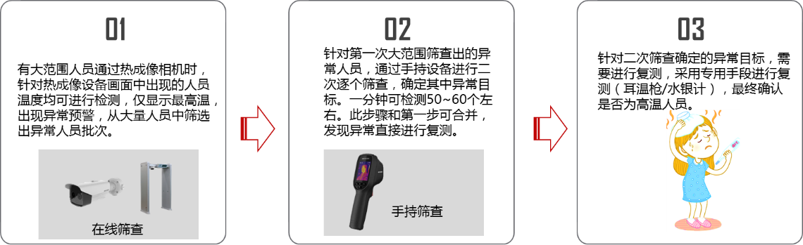 針對(duì)二次篩查確定的異常目標(biāo),需要進(jìn)行復(fù)測(cè),采用專用手段進(jìn)行復(fù)測(cè)(耳溫槍/水銀計(jì)),最終確認(rèn)是否為高溫人員。