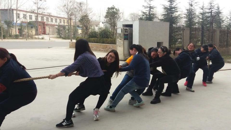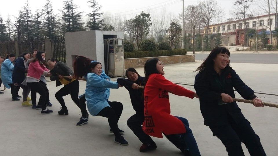稍事休息后開展的團(tuán)隊(duì)拉鋸賽——拔河,給本次活動(dòng)畫上了圓滿的句號(hào)。平時(shí)溫柔賢淑的“女神”秒變“女漢子”,紛紛挽起袖口,扎好馬步,緊握繩子,鉚足了勁向自己隊(duì)伍的方向拉。只見繩子中間的紅布在中軸線上來來回回,兩隊(duì)隊(duì)員實(shí)力不分伯仲。幾輪之后,其中一隊(duì)齊心協(xié)力攢足余勁奮力一拉,贏得了比賽的最終勝利,現(xiàn)場立即被一片歡呼雀躍聲淹沒。