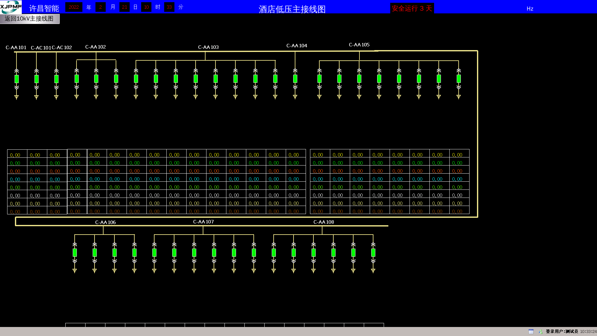 系統(tǒng)人機界面友好,以配電一次圖的形式直觀顯示配電線路的運行狀態(tài),實時監(jiān)測各回路電壓、電流、功率、功率因數(shù)、電能等電參數(shù)信息,動態(tài)監(jiān)視各配電回路斷路器、隔離開關、地刀等合、分狀態(tài),以及有關故障、告警等信號。