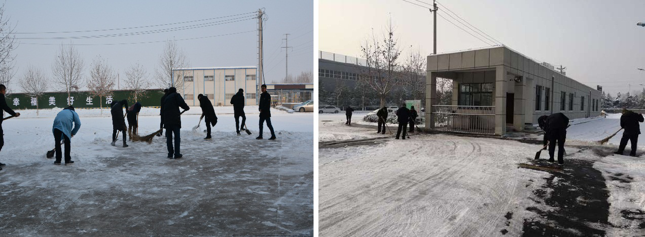 1月9日,許昌市迎來2019年的第一場大雪,雪帶著春天的氣息飄然而至,大地萬物銀裝素裹,如童話的世界一般,令人不禁發(fā)出“瑞雪兆豐年”的美好感嘆。連續(xù)兩日的降雪,導(dǎo)致公司員工和車輛出行受阻;為減少降雪帶來的不便,保障員工出行安全,在送別初雪之后,公司員工第一時間開展了義務(wù)清理積雪活動。員工們冒著凜冽的寒風(fēng),紛紛拿起鐵鍬、掃帚等工具,在工會主席的帶領(lǐng)下自發(fā)組建掃雪隊伍。