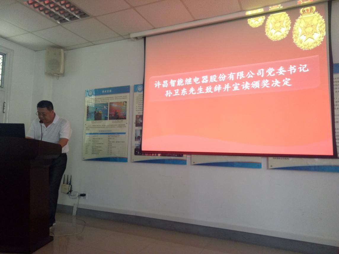 隨后,公司黨委書記宣讀2018“許昌智能配用電獎助學金”表彰決定。公司黨委書記與學院黨委副書記一一上臺為獲獎學生頒獎并合影留念。