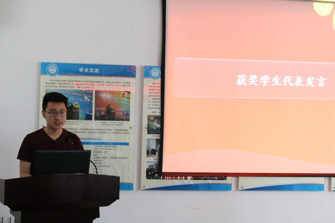 最后,獲獎學生代表上臺發(fā)表獲獎感言。他表示感謝公司和學院對所有獲獎學生的認可與支持,他們會珍惜公司提供的學習實踐機會,在學校努力完成學業(yè)課程,在公司踏實學習實踐技能,為國家配用電領域的發(fā)展貢獻自己的力量,不辜負公司和學院的鼓勵和期望。