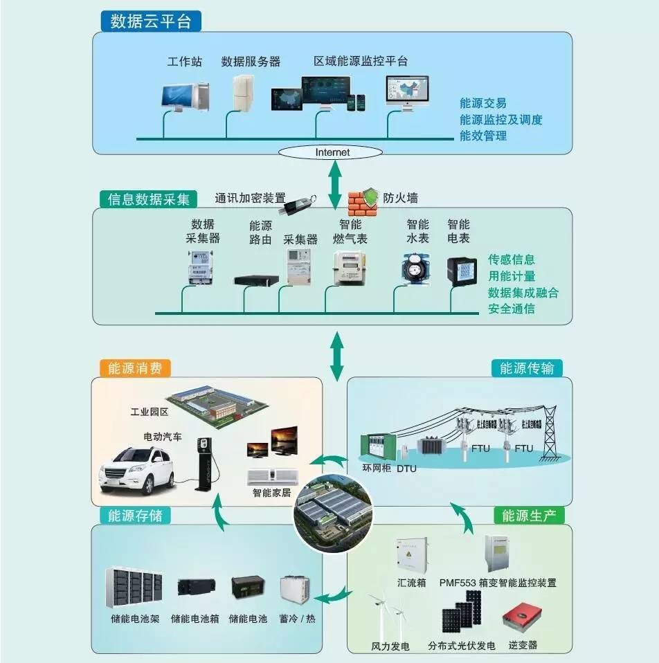 區(qū)域(園區(qū))能源綜合監(jiān)控系統(tǒng)是以電力網(wǎng)絡為主體架構(gòu),覆蓋能源供給、傳輸、存儲轉(zhuǎn)換、分配和消費的能源鏈。通過建設含電、熱、冷和交通等開放共享的綜合清潔能源網(wǎng)絡,實現(xiàn)能源生產(chǎn)、消費的及時有效接入,提高能源的綜合利用效率。