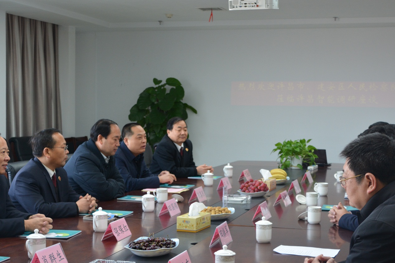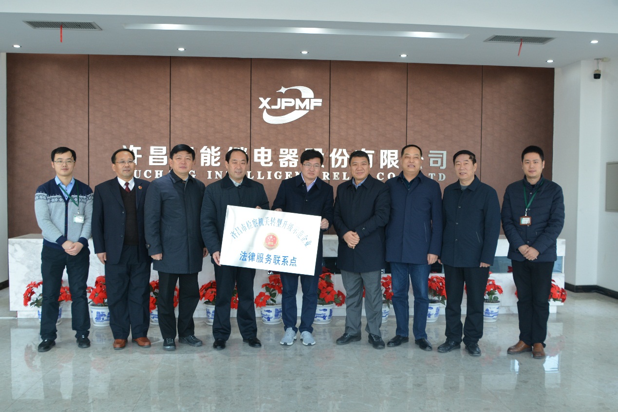 2018年1月30日上午,許昌市人民檢察院黨組成員/紀(jì)檢組長(zhǎng)楊喜民、許昌市建安區(qū)人民檢察院檢察長(zhǎng)王偉及黨組成員段成立、田國領(lǐng)、張保紅、肖群生等領(lǐng)導(dǎo)一行蒞臨公司調(diào)研座談,出席“許昌市檢察機(jī)關(guān)轉(zhuǎn)型升級(jí)示范企業(yè)法律服務(wù)聯(lián)系點(diǎn)”授牌儀式。許昌市城鄉(xiāng)一體化示范區(qū)黨工委副書記/管委會(huì)副主任楊朝暉、黨工委委員/管委會(huì)副主任范忠誠、公司董事長(zhǎng)等領(lǐng)導(dǎo)予以熱情接待。