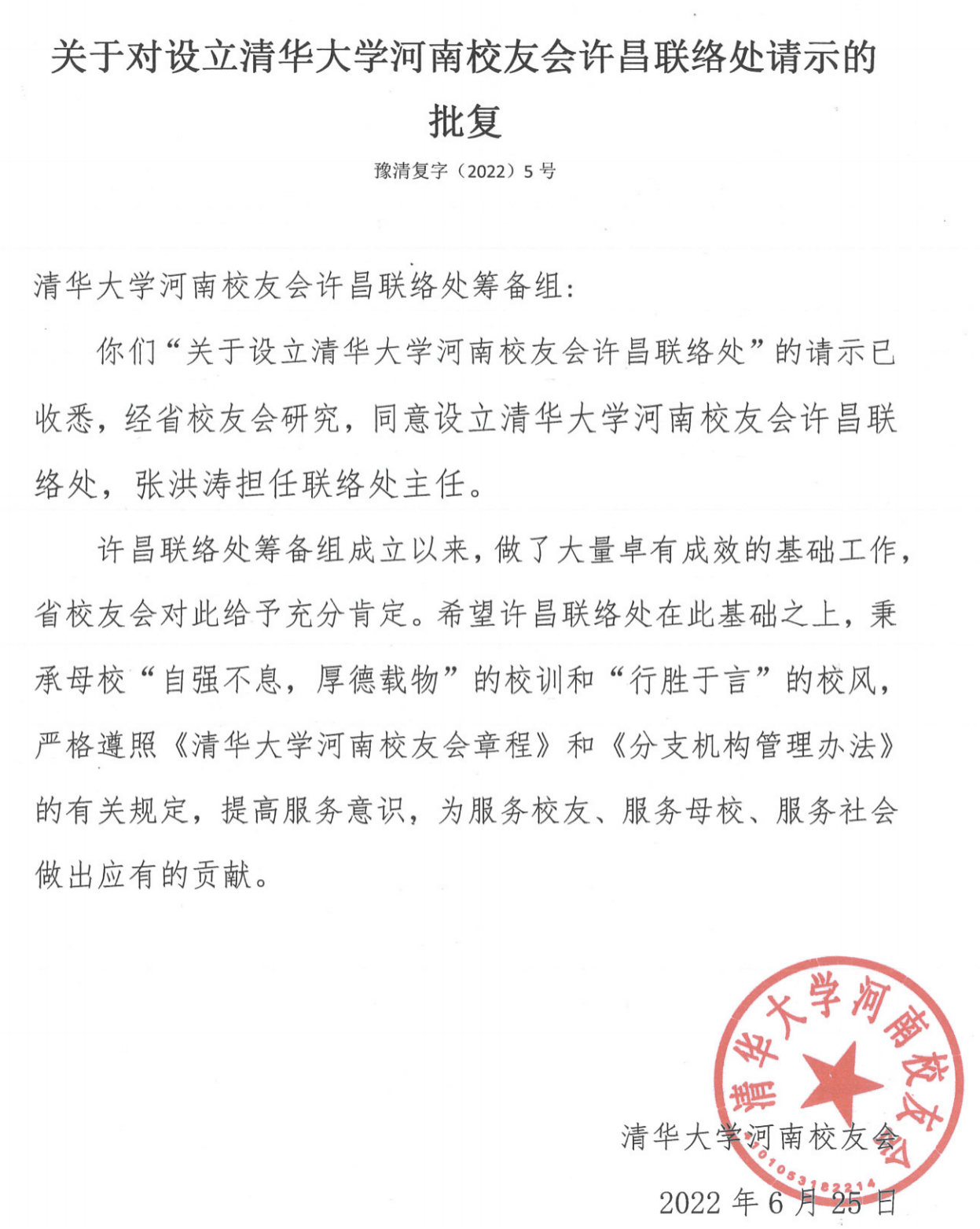 6月26日,清華大學(xué)河南校友會(huì)許昌聯(lián)絡(luò)處籌備組收到清華大學(xué)河南校友會(huì)《關(guān)于對設(shè)立清華大學(xué)河南校友會(huì)許昌聯(lián)絡(luò)處請示的批復(fù)》,經(jīng)清華大學(xué)河南省校友會(huì)研究,同意設(shè)立清華大學(xué)河南校友會(huì)許昌聯(lián)絡(luò)處,聯(lián)絡(luò)處辦公室設(shè)置于許昌市城鄉(xiāng)一體化示范區(qū)許昌智能大廈,公司董事長擔(dān)任聯(lián)絡(luò)處主任?! ≡S昌聯(lián)絡(luò)處籌備組成立以來,許…